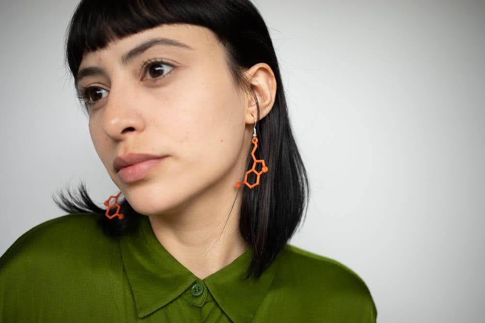 Neurotransmitter necklaces and earrings in silver or uniquely hand-dyed to match your lookGet the Complete Look with Pairs
